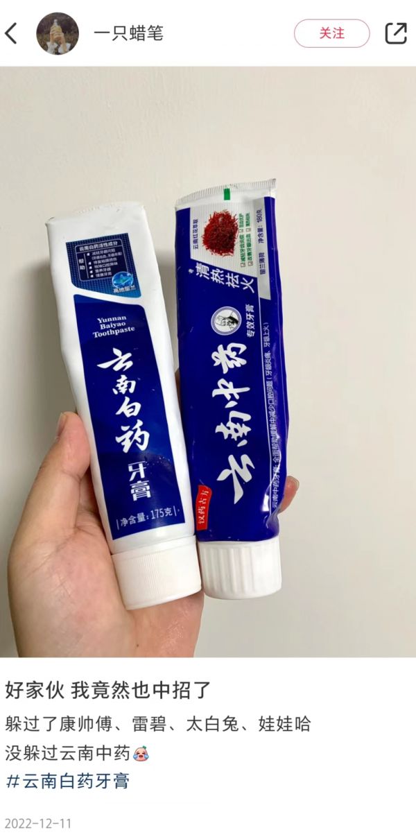 社交媒体上,时常会有网友针对自己上当的经历锐评,一生一世躲山寨,躲过了康帅博、雷碧,最终还是败给了“云南中药”。