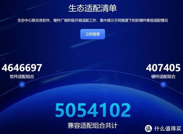 先说生态数量,从官网可以查到,目前统信UOS的生态数量是5054102,是所有国产操作系统中最多的,其中兼容的软件数量是4646697个,兼容的硬件是407405种。