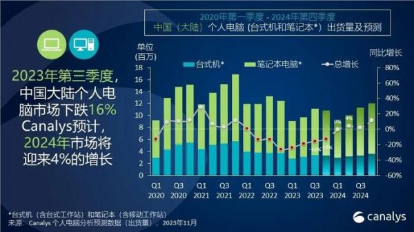 据该机构预测,2023年全年中国大陆的个人电脑市场(不含平板电脑)将下降18%,而2024年将出现4%的小幅增长。这一增长势头预计将在第二季度及以后实现,其原因是一些战略性产业的大型企业在IT方面的投资将推动商业需求的进一步复苏。