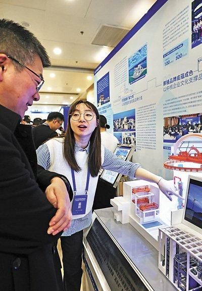参会嘉宾在观看企业展示资料。 本报记者 蒋雨师摄