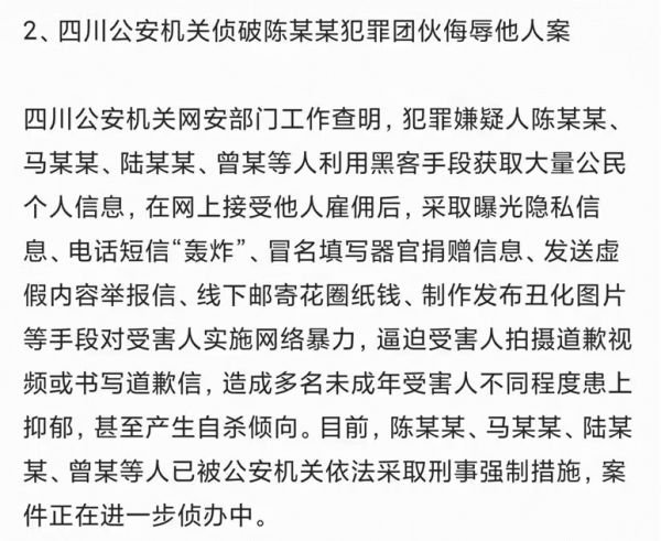 最近的还有件这方面大事,则是一个叫“主祭”的网报团伙落网,还成了网络暴力违法犯罪典型案例。
