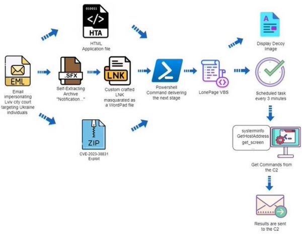 报道称 UAC-0099 利用编号为 CVE-2023-38831(CVSS 评分:7.8)的 WinRAR 漏洞,分发 LONEPAGE 恶意脚本。