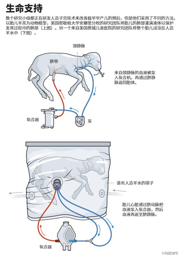 CHOP的研究团队大胆预测了这项技术的潜力。2017年另一段描述该项目的视频中,在CHOP一直领导这项工作的胎儿外科医生Alan Flake说:“如果它最终能取得我们所预料的成功,那么大多数被预测有极早产风险的胎儿将在出生后被接入到我们这个系统中,而不是过早地接上呼吸机。” 2019 年,CHOP 团队的几名成员加入了美国费城的一家初创公司 Vitara Biomedical,该公司于此后筹集了 1 亿美元开发 EXTEND(Flake拒绝对为本文提出评论,称有“利益冲突”和“专有信息限制”。2017年那篇论文中Flake的合著者们也未回应《自然》置评请求)。