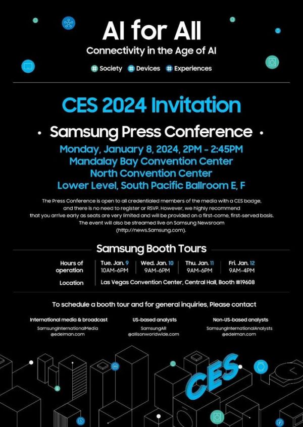 然而不仅是过去一年讨论起来绕不开 AI 的英伟达、AMD、英特尔。早在 12 月初,三星就宣布参加 CES 2024,并计划在开幕前一天举办特别新闻发布会,将由三星副董事长、CEO 兼 DX(移动)部门负责人 Jong-Hee Han 出席主持,更值得关注的是,这场发布会的主题被确定为《AI for All:AI 时代的连接》。