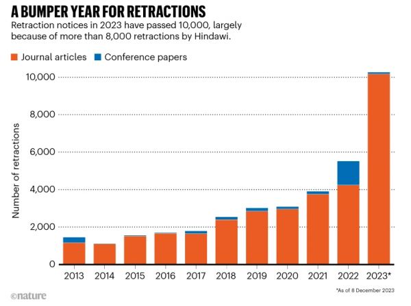 2023年走入尾声,今年学术界除了在诸多领域取得突破、带来惊喜之外,在科研诚信方面也创造了一个新纪录。据《自然》(Nature)统计[1],2023年全球科研论文撤稿数量超过1万篇,为历史新高。一方面,这是各大出版商努力打击学术不端的成果,另一方面也充分暴露了多年来一直为学界所诟病的同行评议(或称同行评审,Peer review)问题。