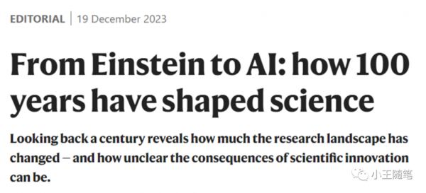 我对这个话题好奇的缘起是上周 Nature 上发表的一篇编辑部评论(Editorial):《从爱因斯坦到AI:100年光阴如何改变科学》。