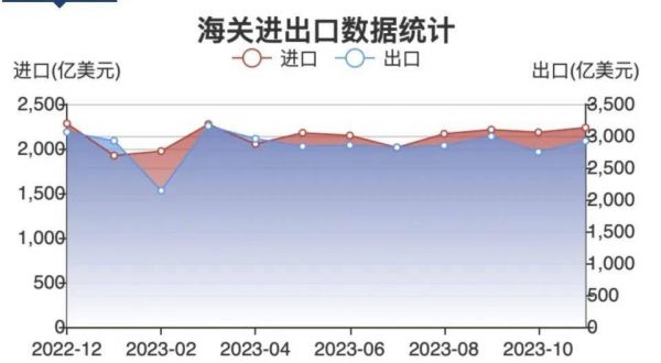 最新公布的11月外贸数据显示,出口在经历半年的负增长之后终于反弹回正,而进口则有所回落。按美元计价,11月出口同比上升0.5%,超出市场预期,进口跌0.6%。今年前11个月,我国进出口总值5.41万亿美元,下降5.6%。