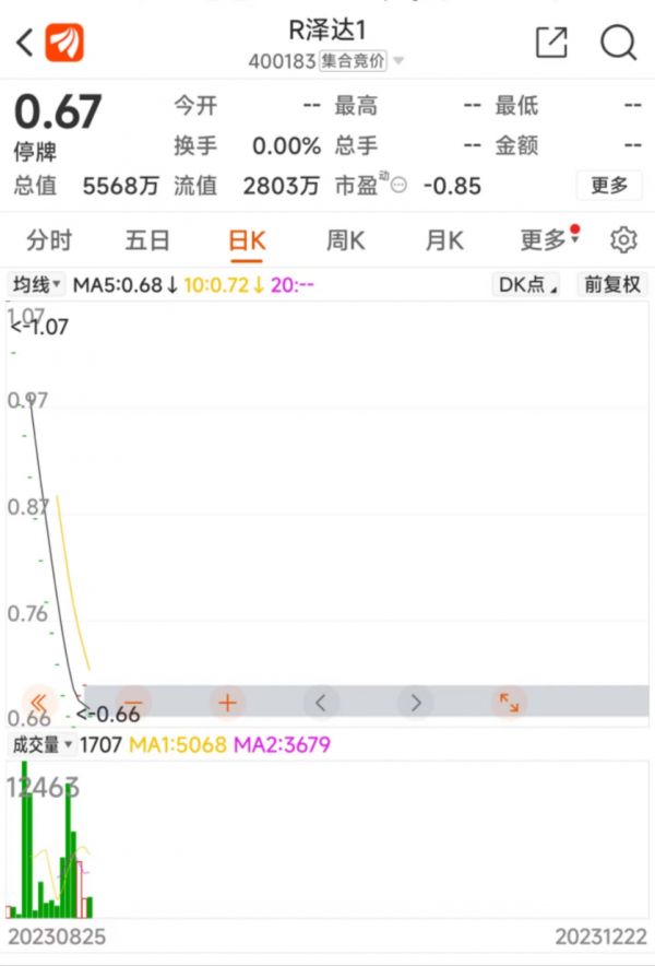 目前,泽达易盛已退市至老三板,最新股价为0.66元,总市值为5568万元。