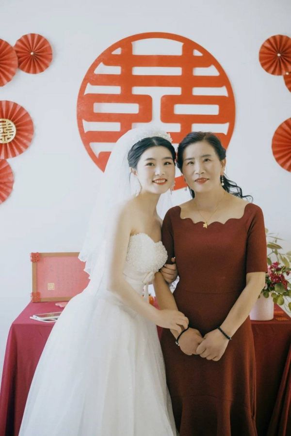 新娘和母亲的合影,此时母亲已经癌症晚期