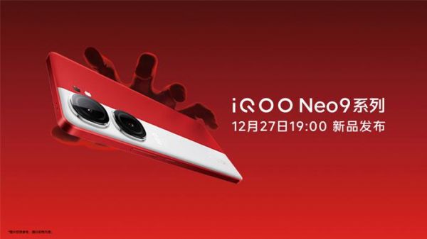 iQOO Neo9 系列手机 12 月 27 日 19:00 发布,iQOO 首款智能手表 iQOO WATCH、iQOO TWS 1e 耳机、iQOO 散热背夹 2 也一同推出。