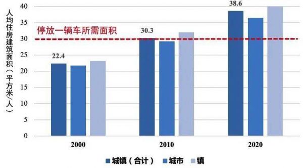 此外,我们还要对一个停车位要占用的面积有认知。根据我国《城市停车规划规范》,一个停车位大约需要占用30m2左右的土地。改革开放以来,全国城镇居民人均住房建筑面积由1978年的6.7m2增加到2020年的38.6m2。也就是说,停放一辆车与一个人的住房面积相当。美国的测算数据显示,停车位大约占用了美国市中心20%的土地面积。