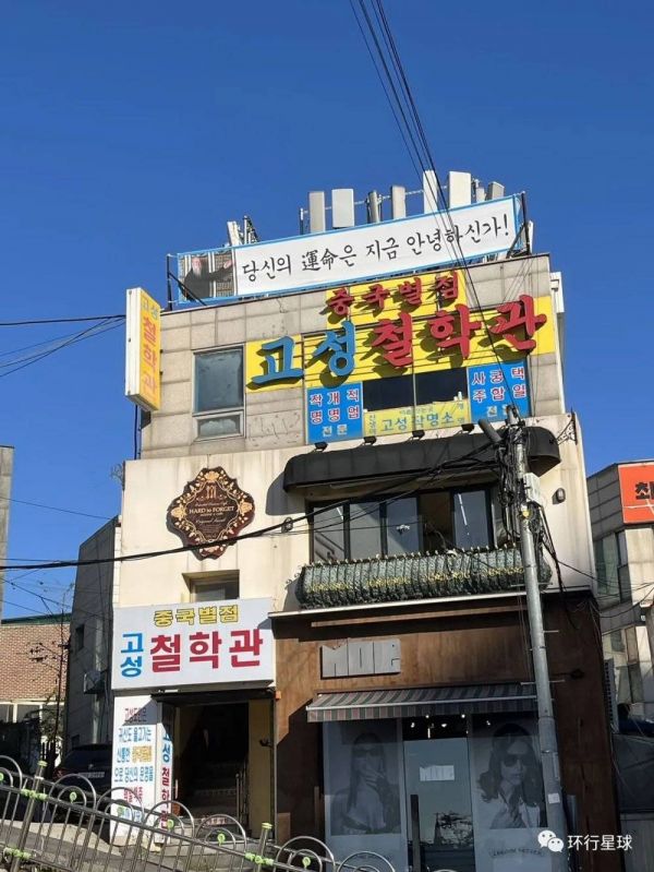 韩国路边的哲学馆,上面白色的横幅上写着“您的命运现在还好吗?”图:安琪