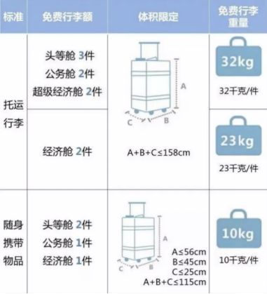 以经济舱为例,托运的行李重量需要少于23kg,两件行李也有近50kg。手提的行李虽然限重10kg,但是手提行李一般不会称重,所以有些人会携带30kg甚至50kg的行李登机,前面压塌行李架的行李,估计也是这么来的。