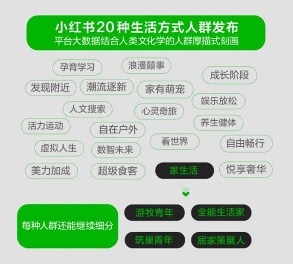 小红书通过数据聚类的方式,用1400多个标签将用户聚成不同的簇,然后基于千机塔的方法论,结合人群属性和情绪、情感、价值观等8个维度对用户进行厚描式刻画,被刻画出的特征用户,进一步补充7大维度、21个指标再一次交叉分析,完成最终的人群描摹。