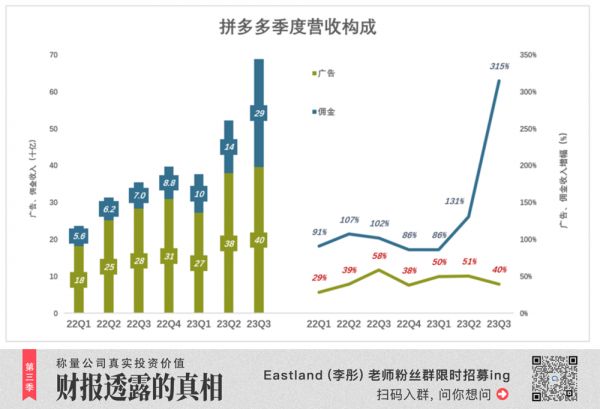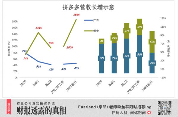 2023年前三季度,佣金业务体量已达广告的51%,增速为广告的4倍,成为推动拼多多营收增长的第一动力。