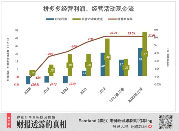 2023年前三季度,拼多多经营利润、净利润、经营活动现金流净额分别为363亿、367.4亿和572.7亿。