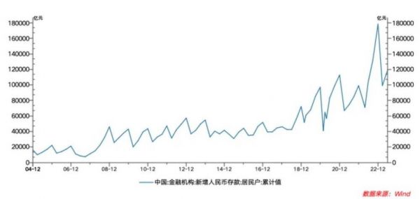 从居民存款变化看,2022年居民存款大幅上升,主要是理财产品大量赎回后进入银行存款,2023年上半年居民存款大幅下降则是存款回流到理财。由于理财主要是投向债券,那么2022年底到2023年初的存款先增后减,直接导致债券在2022年底大跌,然后在2023年上半年又大涨。同时2022年存款大幅增加也有一部分股市资金回流到存款,但是这部分资金仍没有再回到股市(见图)。