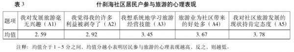 并且,从心理表现的调研中发现,社区居民对参与旅游感到沮丧、漠然,对待当地旅游业及发展问题不太关心与持否定态度[1]。