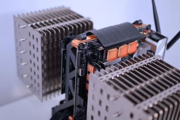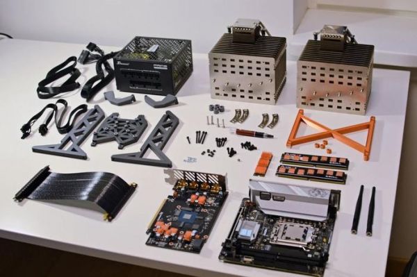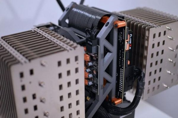整套定制系统采用了两个猫头鹰(Noctua)NH-P1 散热器,通过 3D 打印部件进行固定。