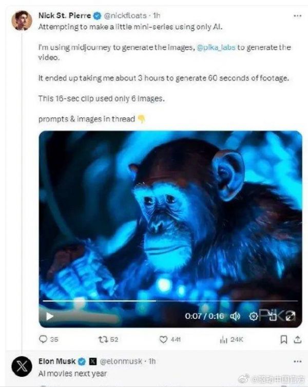 12月27日消息,近日,马斯克推特回应一位X用户的帖子表示,全部由AI制作的电影有望在明年出现,暗示未来AI电影将取代好莱坞。此前有用户分享了他制作的一部AI生成的迷你剧,描写一只猴子在一个神秘洞穴里绘制蓝图并建造一艘球形宇宙飞船,画面栩栩如生。马斯克评论称:“AI电影明年就会出现。”#马斯克预测AI电影明年就会出现#(环球市场播报)