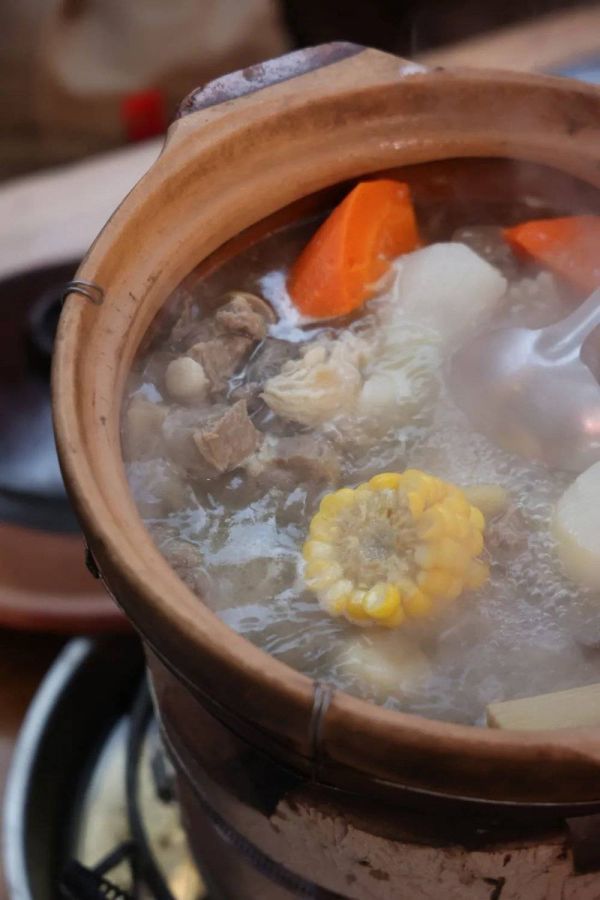 除了利用食材搭配,达到最佳的滋补功效,清甜的马蹄和竹蔗更能激发羊肉汤的鲜甜。用本地人的说法就是:“就像煲糖水一样。”