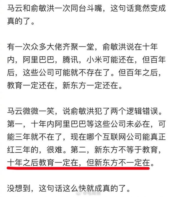 #东方甄选拟15亿出售教育业务# 东方甄选15亿元向母公司出售教育业务,将专注直播业务,马云这是神预言了。[吃瓜]