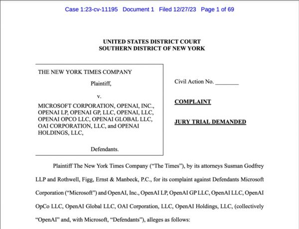 《纽约时报》将OpenAI、微软告上法庭,发生了啥?