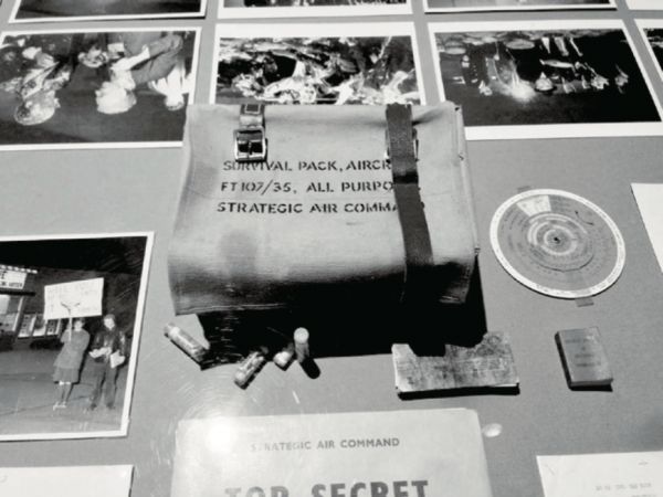 我脑海中冒出的第二个问题是:为什么是这些物品?在研究过程中,我收集并记录了从“二战”到《奇爱博士》电影描述的时代发给飞行员的各类救生包。库布里克的制作团队显然很专业。刚少校清单上列出的绝大部分物品都出现在当时的救生包中。但说到口红、避孕套和尼龙长筒袜之类的玩意,情况就变得有点儿诡异了。现实中的救生包里通常根本不会出现这些东西。