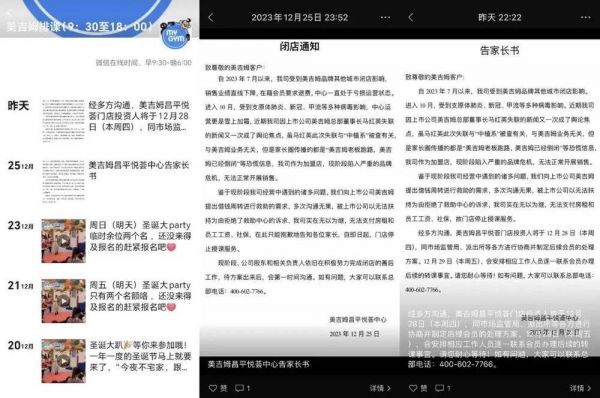 美吉姆北京清河万象汇店则没有任何通知的,同样于这天闭店。据其员工透露,门店已拖欠其工资月余,其在前一晚临时接到通知,称公司将停缴社保,因此任课老师也在找途径维权。