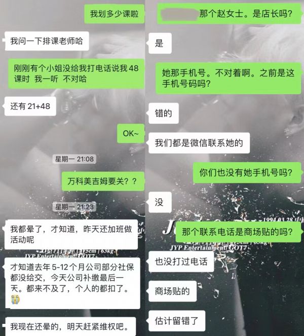 王女士没有接到任何电话,刷朋友圈时才知道店铺关门了:“看这个发的时间点,也没有人来跟我们做解释。”看到通知后,她私信排课老师,两天来未得到回复。一些家长还被老师删除了微信:“我们只知道老师的英文名字,其他一概不知。”
