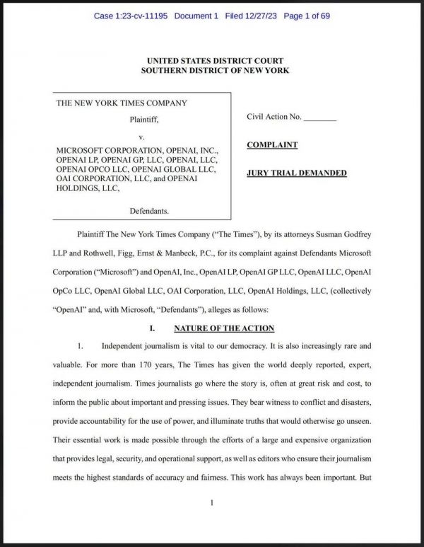 《纽约时报》提交的诉讼书