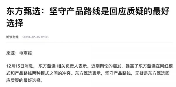 东方甄选态度强硬,回应外界质疑时一句“坚守产品路线,无疑是东方甄选回应质疑的最好选择”。无疑向外界昭示:董宇辉没有那么重要。