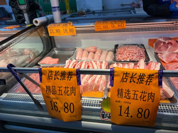 超市猪肉类价格 摄影:《财经》记者 张明丽