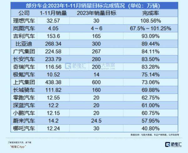 连续推出多款增程式电动车(L7/L8/L9)的理想吃尽红利,销量和利润迎来双击。2023年1-11月份理想汽车一共卖出了32.56万辆,相比其他车企更是早早完成了本年度的目标。