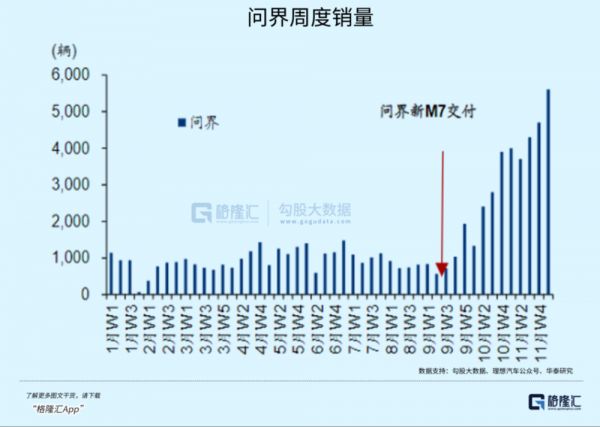华为一直和造车保持“暧昧”,问界新M7作为他上演“王者归来”的重头戏,自9月12日上市以来大订已经突破10万辆,与奇瑞合作的智界S7在11月底订单突破2万辆,吹响了“遥遥领先”的号角。