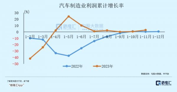 这并不妨碍车企进一步压缩自己的利润空间来换取份额。今年前11个月汽车整体制造业利润率为5%,我们可以清晰地看到这一年价格战的影响,尤其在销量提升的下半年,价格降得越凶,利润增速也逐渐向去年收敛。假如明年淘汰赛愈演愈烈,那么增速还远未触底。