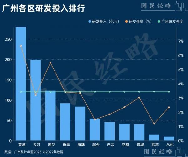 2022年,黄埔区全社会研发经费投入达到286亿元,占全区GDP总量的6.14%,达到国际发达城市水平,远超全省3.42%的平均水平。