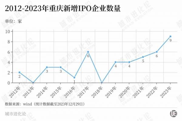 过去十年,重庆每年上市企业的新增数量多维持在5以下的水平,甚至2013年、2018年还挂了零。