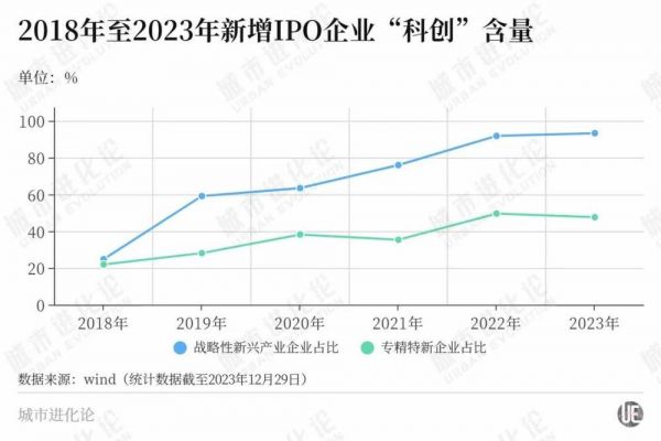 从上述趋势图可以看到,2018年新增的上市企业中,属于战略性新兴产业的企业比例只有24.76%,是“专精特新”企业的比例也只有21.9%。