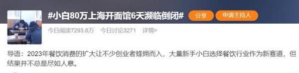 12月28日上午,话题#小白80万上海开面馆6天濒临倒闭#登上微博热搜。
