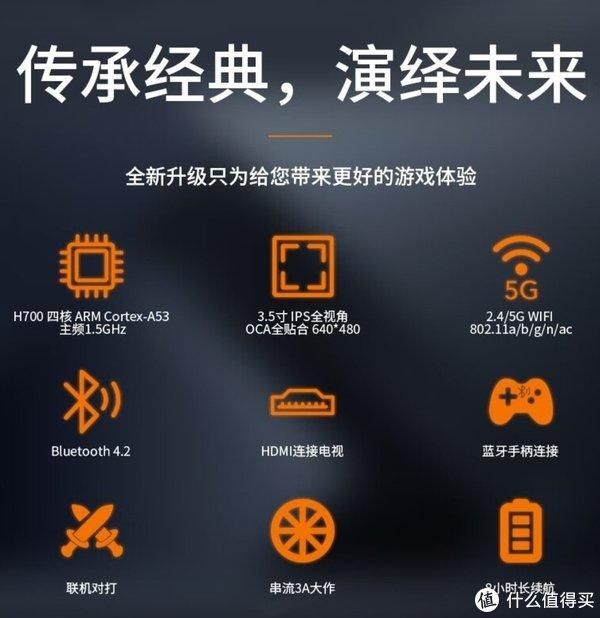 这个是它的配置参数,作为一个游戏机,CPU四核心还要的,3.5寸的屏幕虽然小了点,但是方便携带啊,比如在地铁上,通勤的路上,随手就可以掏出来玩两局!而且看介绍,还可以用HDMI线连接电视玩的哦!