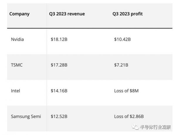 尽管像台积电、三星和英特尔这样的芯片行业竞争对手在2023年都享有一定程度的进步(无论是收入还是利润方面),但你可以清楚地看到,拥有多个业务部门供应范围广泛的极度渴求技术的人工智能市场,带来的点金效应。