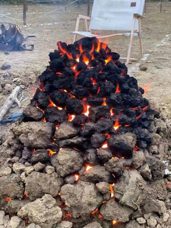 在营地内动手烤“两广窑鸡”。图源 / 吕健供图
