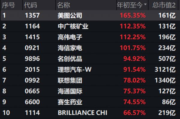(港股通今年涨幅排名靠前的个股)