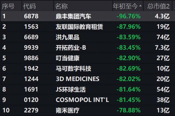 (港股通今年跌幅最大的个股)