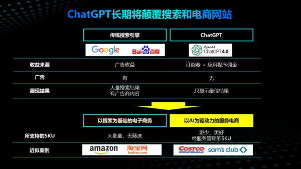 从长远来看,AI对搜索以及搜索技术相关应用的影响是巨大的,完全有可能颠覆搜索引擎,颠覆其现金奶牛—竞价广告的盈利模型,所以目前最紧张ChatGPT的,是Google。但OpenAI的挑战也似乎非常明显:颠覆了广告模型,靠什么赚钱?