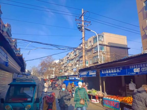 八大局便民市场本是一个普通的菜市场,一夜之间成了淄博最热门的景点。它与附近的居民区血肉相依,落脚在居民区中的街道上,生长于居民楼的楼下。