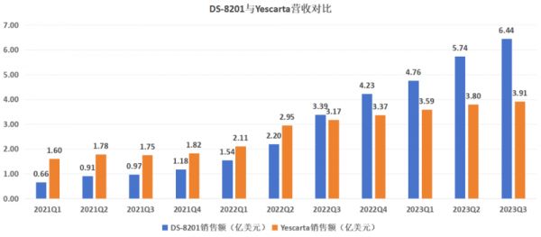 图:DS-8201与Yescarta营收对比,来源:锦缎研究院