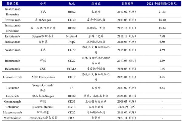 图:全球上市ADC药物一览,来源:开源证券