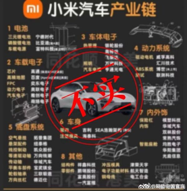 小米称网传汽车产业链图至少5成错误